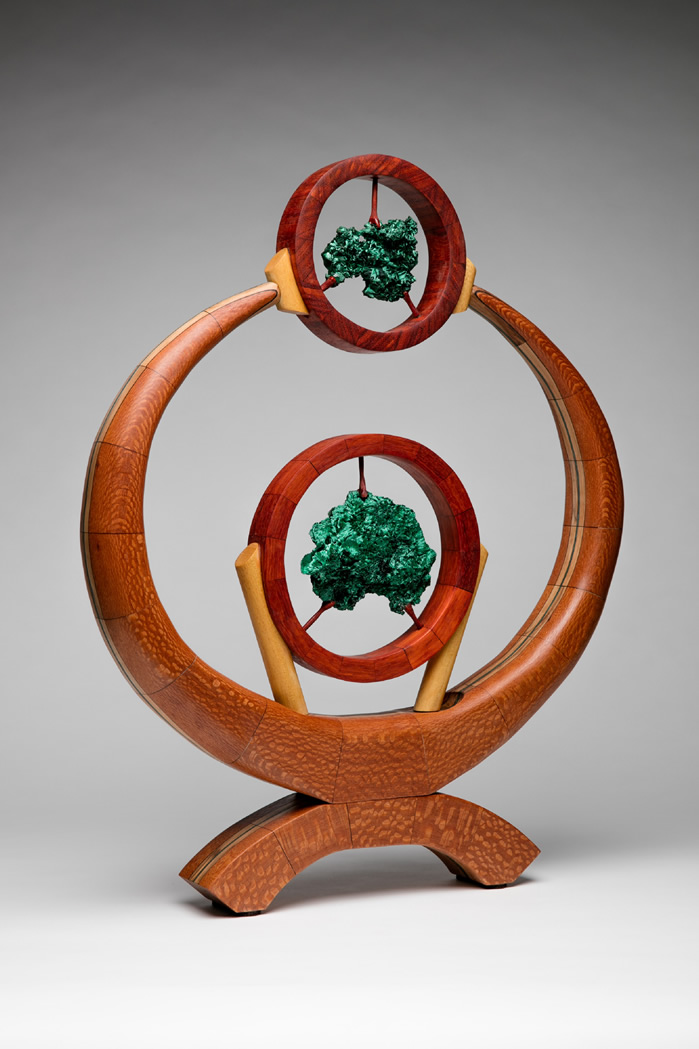 Lacewood, Yellowheart, and Paduak with Malachite Crystal Formations